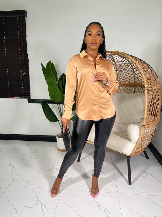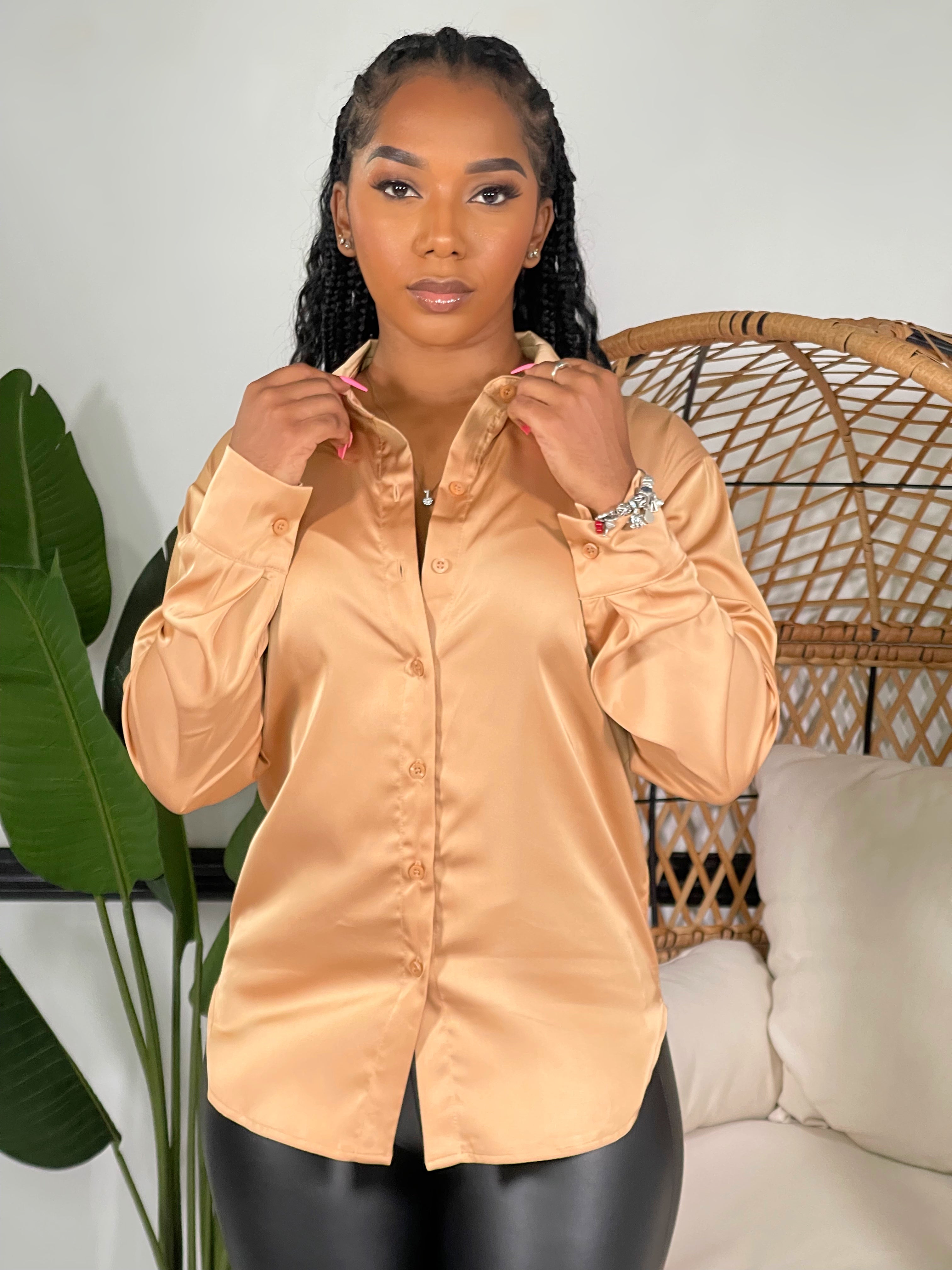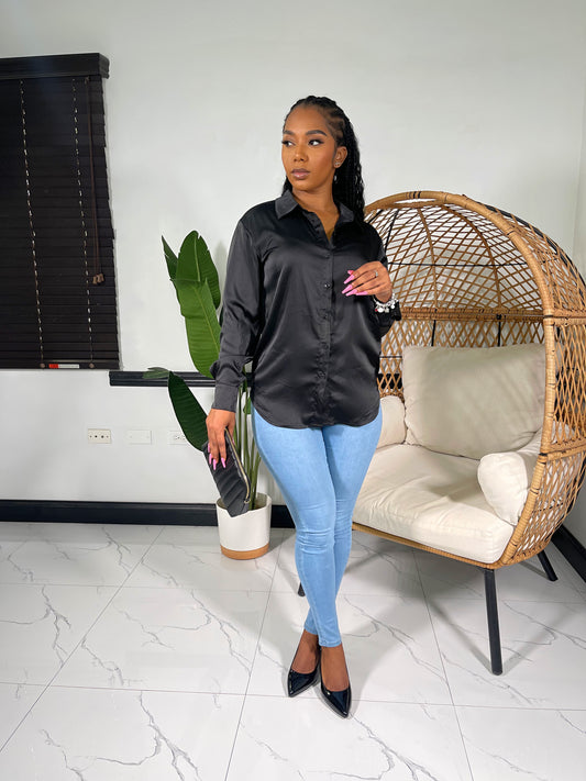 Nova Satin Button Front Shirt-Black(RESTOCKED)
