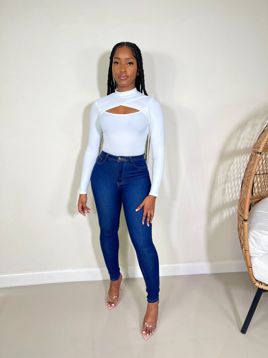 Elena Cut Out Ribbed Bodysuit-White