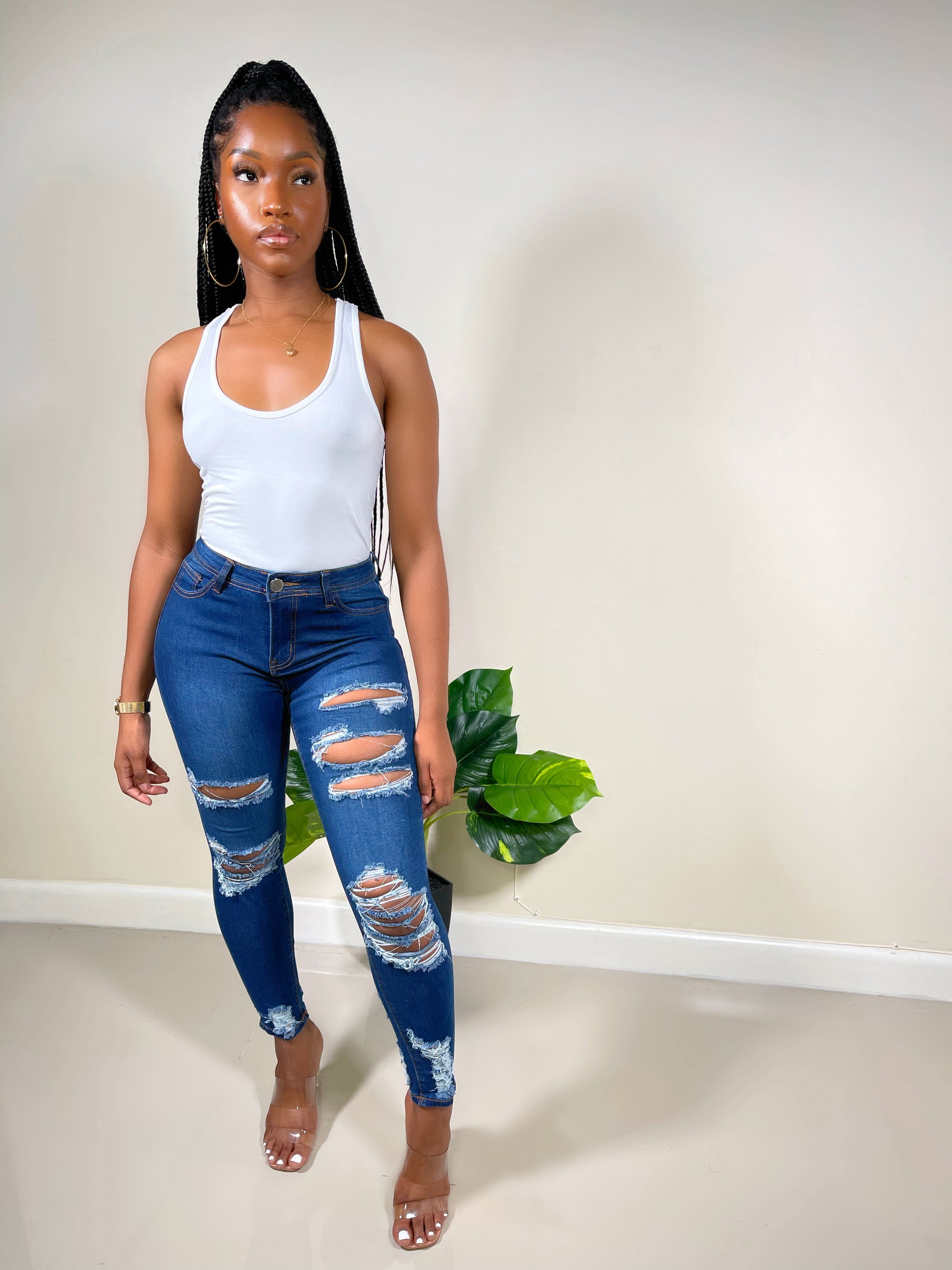 - High Waisted Ankle Jeans