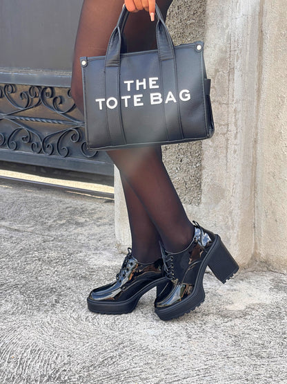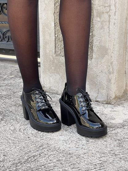 Crafted with a sleek patent finish, these lace-ups feature a chunky block heel and lug sole that give you extra height without sacrificing comfort. The perfect fusion of loafer polish and boot-like presence, designed for the Impoze Babe who leads with confidence.