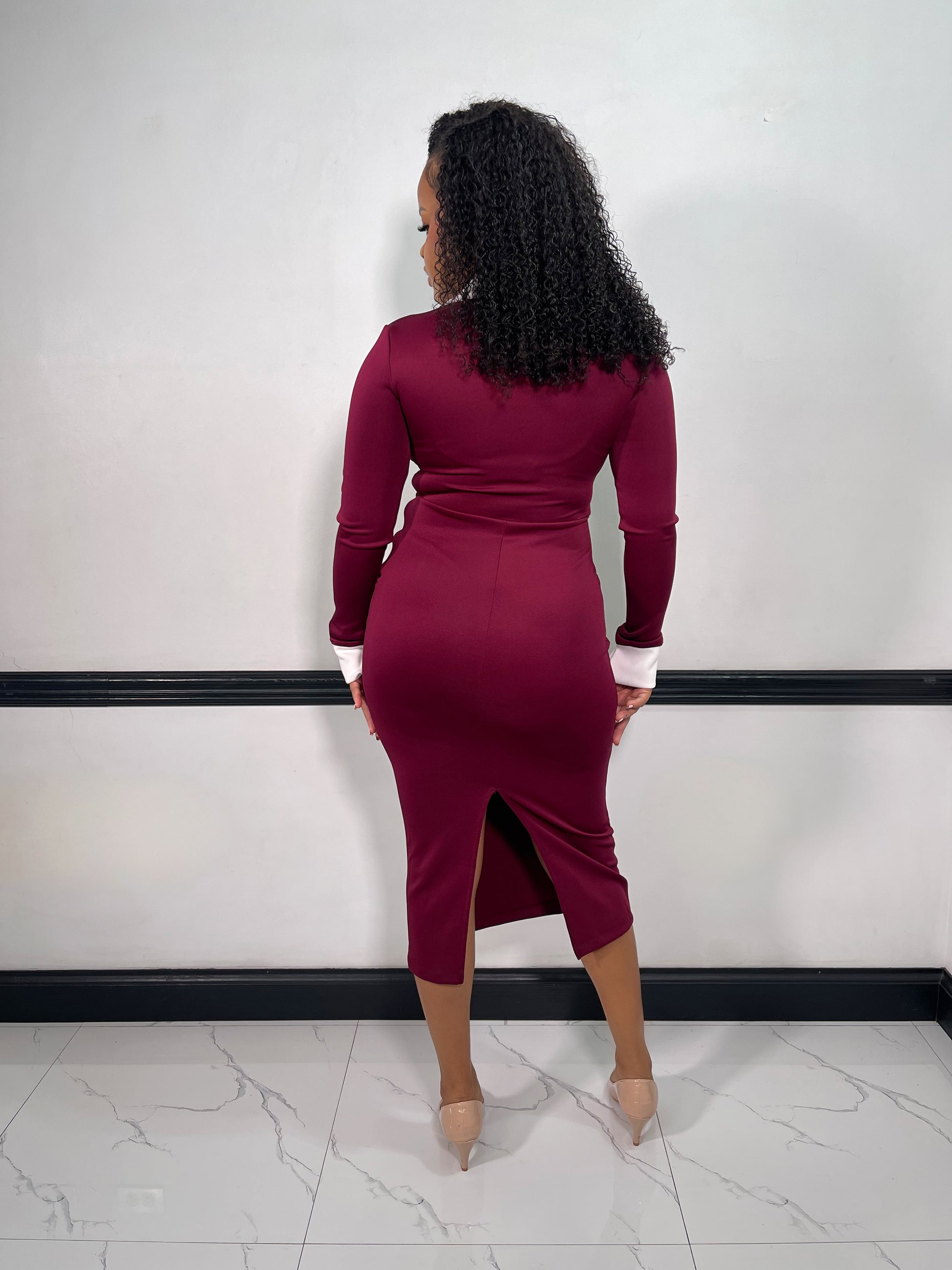Elise Midi Dress-Burgundy