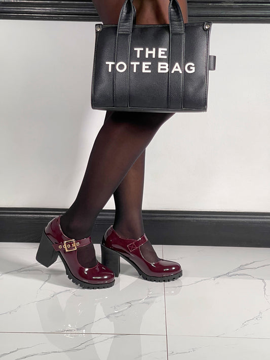 Boss Babe Platform Buckled Loafers Heels-Burgundy(Restocked)